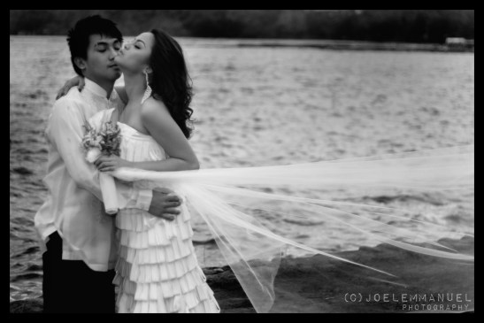 Bride and groom by the lake